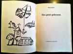 * Verscholen achter de vrolijke decoratie van de buitenkant sluipen primitieve verbeeldingen van helse monsters doorheen de traditionele typografie. Leeflang 43.