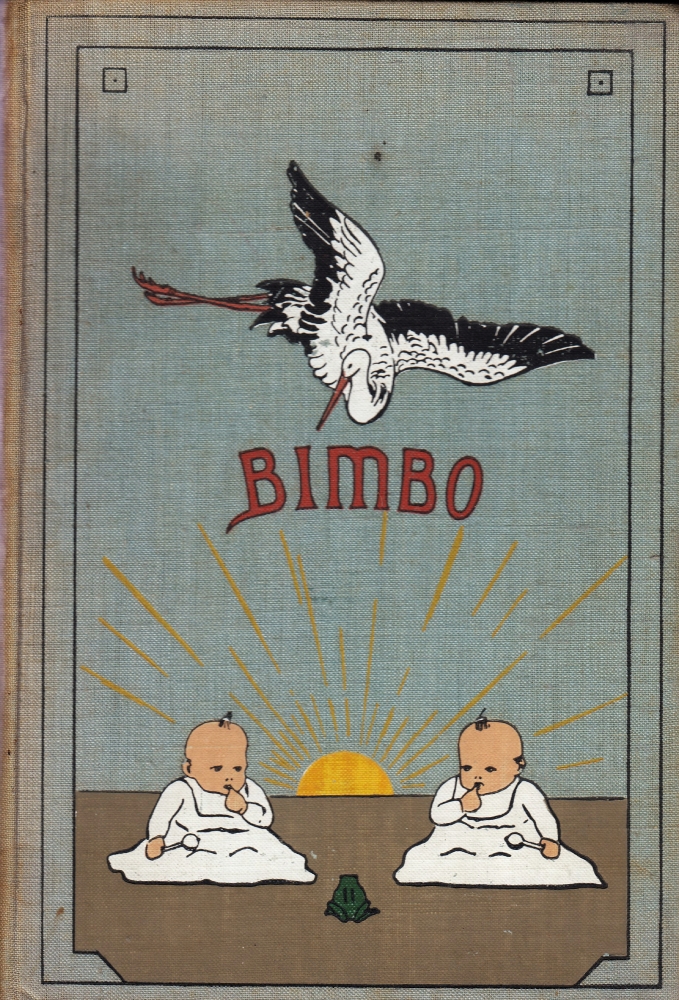 41. YOUNG, Grace Chisholm Bimbo, de geschiedenis van den ooievaar. Door Tante Willy (Grace Ch. Young, Phil. Dr., Med. Cand.). Onder toezicht van Dr. A.N. Nolst Trenité, in het Nederlandsch bewerkt door Mevr. A.H.J. Nolst Trenité. Met een titelplaat en 25 figuren in den tekst. (Seksuele voorlichting anno 1908). Utrecht, Van der Heide & Leijdenroth, 1908. Versierd linnen. 104 p. Geïllustreerd. 1e druk. Rug verbleekt en gevlekt, enkele kleine vlekjes, maar een mooi exemplaar.