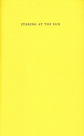 2. BARNES, Julian Staring at the sun. Groningen, Marlies Louwes, 1997. Genaaid met felgeel omslag. (12) p. Met de hand gezet uit de Bembo en gedrukt door Marlies Louwes op Zerkall-Bütten in een oplage van 40 genummerde exemplaren. Met een kleurenlino van Marlies Louwes. Prachtig!