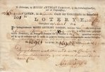 36. STAATSLOTERIJ Ingevuld biljet van verhuur van loten in de Generaliteits nu Bataafsche Loterij door Moses Anthony Samson aan Simon Romeyn, 8 April 1806. Rotterdam, (Staatsloterij), 1806. 12,5 x 18 cm. Alleen recto. Gesigneerd door Moses Anthony Samson. Wat gevlekt. Lijmsporen achterop.