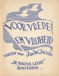 1. Jan W. JACOBS: Voor vrede en vrijheid. Een bundel verzen. Amsterdam, Blauwe Lucht, 1945. 375 genummerde exemplaren.