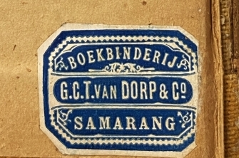 De beroerde staat van de band is ongetwijfeld te danken aan een verblijf in de tropen, getuige het boekmerkje van boekbinderij Van Dorp in Semarang. Deze Kroniek heeft er dus zeker wel zo’n 25.000 kilometer varens opzitten. Wie zou daar niet van slijten!