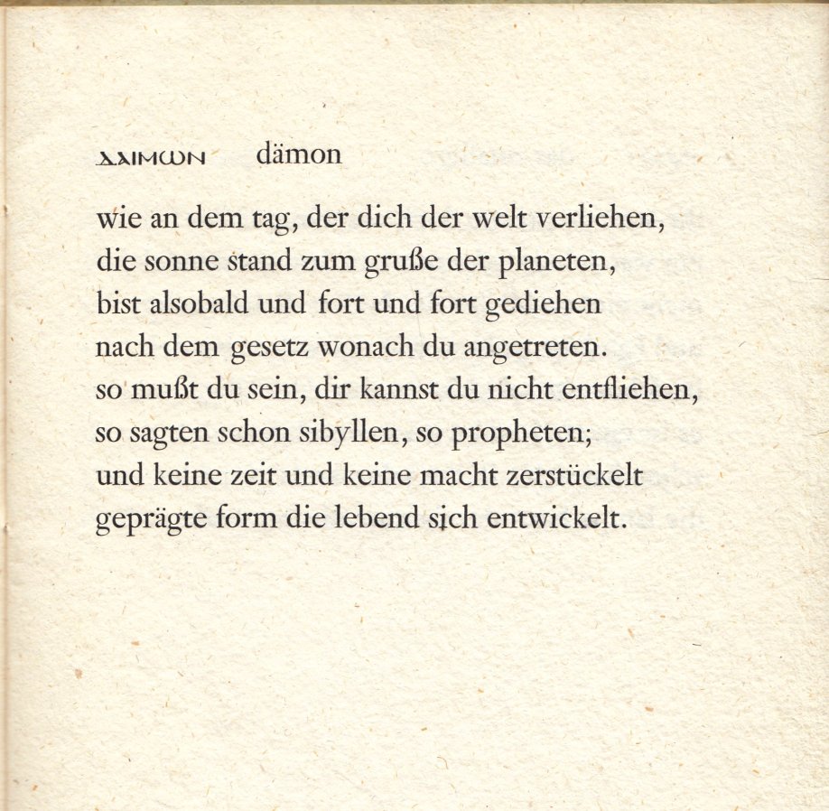 * bijzonder fraaie uitgave gedrukt in enerzijds fraaie griekse, anderzijds al even mooie romein-onderkastletters. de typograaf en letterontwerper henri friedlaender (1904-1996) studeerde in duitsland en woonde van 1932-1950 in nederland. ook daarna hield hij warm contact met nederland.