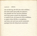* Honderd typografische ontwerpen met citaten uit heden en verleden over letters en drukken, in vele talen. Een monumentale typografische tour de force van de grote Duitse letterontwerper (1918-2015). Subtiel esthetisch: de paginacijfers zijn in blinddruk uitgevoerd! Helaas geen perfect exemplaar, wél gesigneerd door Hermann Zapf.