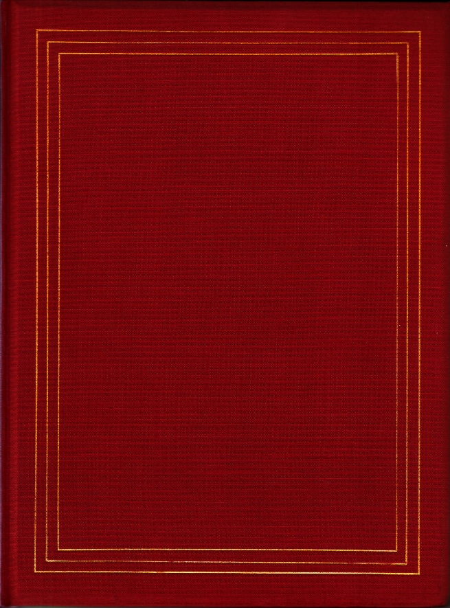 * Zeer fraai stofomslag met de titel in zwart in een kader van brede rode banen.