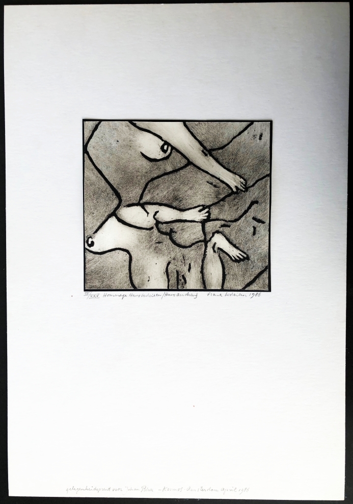 * De ets toont een wirwar van twee lichamen. In De Kosmos aan de Prins Hendrikkade in Amsterdam werd in 1986 de literaire manifestatie ‘Hommage aan Hans Lodeizen en Hans Andreus’ gehouden, met medewerking van onder anderen Johan Polak.