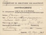 16. KEMP, Pierre Aanvraagbriefje van ‘Stadsarchief en – Bibliotheek van Maastricht’ 10,6 x 13,8 cm. Alleen recto. Scheurtje en twee gaatjes.