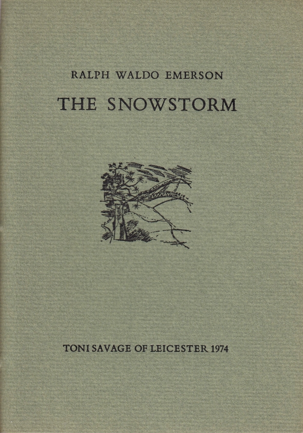 14. (GRAHAM, Rigby). EMERSON, Ralph Waldo The Snowstorm. With drawings by Rigby Graham. Leicester, Toni Savage, 1974. 18 x 12 cm. Cahiersteek. 12 p. Mooi.
