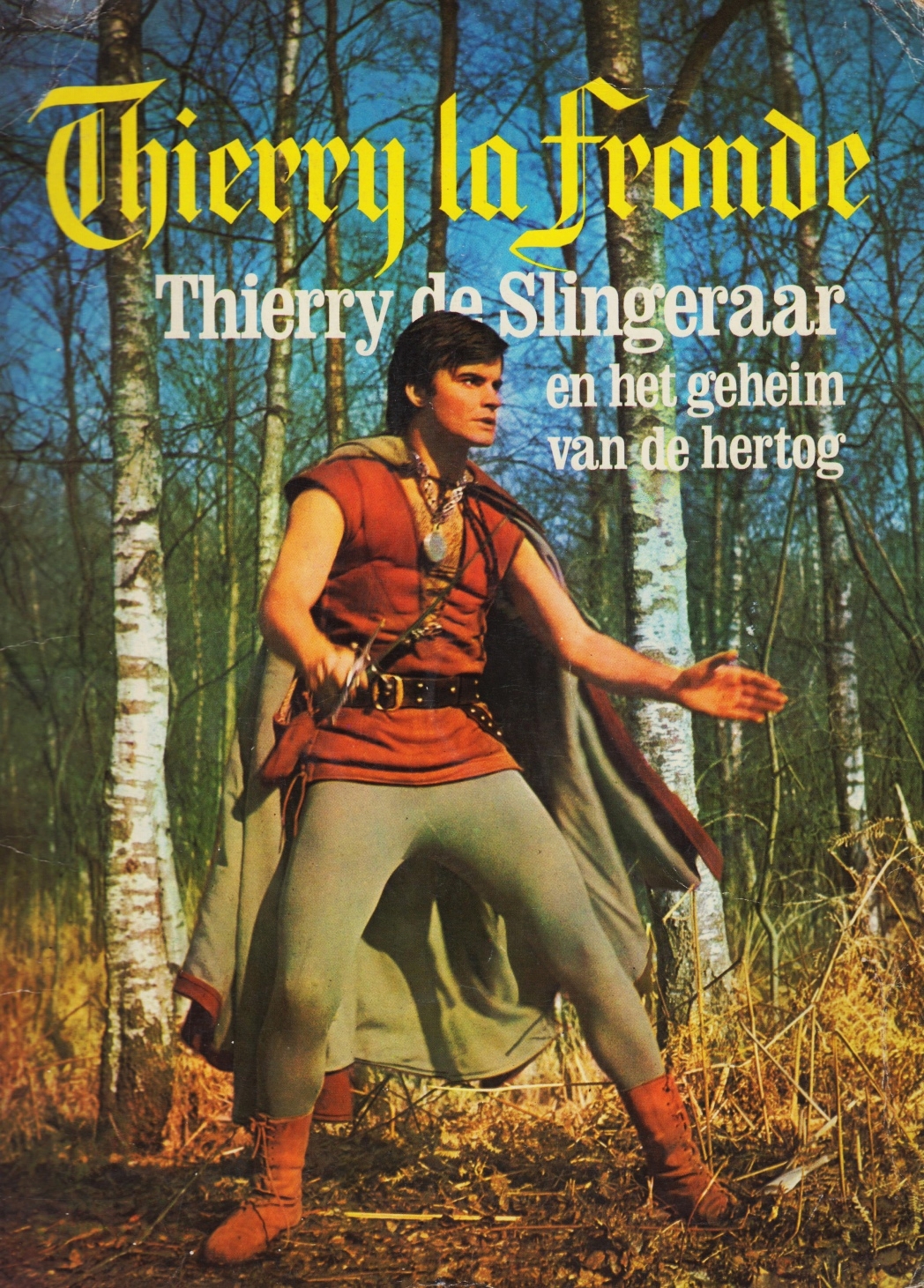 39. THIERRY LA FRONDE Thierry de Slingeraar en het geheim van de hertog. Nederlandse bewerking Frans Grosfeld. Amsterdam, Amsterdam Boek, 1973. 31 x 22 cm. Geniet. 36 p. Met foto’s uit de filmserie in zwart-wit. 2e druk. Lichte gebruikssporen.