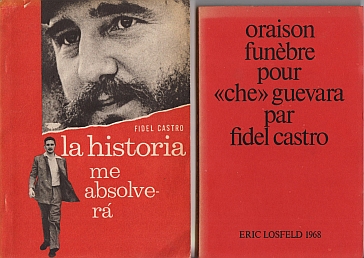 5. CASTRO, Fidel La historia me absolverá. Edición homenaje al XIV Aniversario del asalto al Moncada. (&) Cuba et la crise des caraïbes. (&) Oraison funèbre pour ‘che’ guevara par fidel castro. (3 boeken). La Habana, Ediciones Políticas, 1967. 76 p. (&) Paris, François Maspero, 1963. 180 p. (&) Paris, Eric Losfeld, 1968. 120 p. Ingenaaid. Wat verkleuring en gebruikssporen. Met stempels van verzamelaar Wim Buijze op de titelpagina’s.