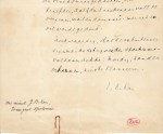 32. SCHAEPMAN, H.J.A.M. Klein stukje handgeschreven tekst met paraaf. Verticaal reepje papier (88 x 25 mm), kennelijk van een ansichtkaart afgescheurd, met de tekst ‘J’aurai l’honneur et le plaisir d’être là à la gare. Salutations. D: Sch.’. Op een velletje papier geplakt waarop in oud handschrift ‘Schaepman’ geschreven is.