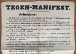 37. SPOORWEGSTAKING 1903 Tegen-manifest. (Affiche van het Katholiek Comité van Actie om arbeiders tot steun aan de regering over te halen). Zonder plaats, Katholiek Comité van Actie, 1903. 49 x 34 cm. Eenzijdig bedrukt krantenpapier. Gevouwen, enkele randscheurtjes. Teer, maar in goede staat.