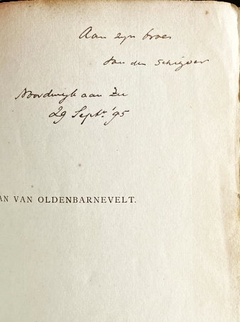 * Exemplaar met op titelpagina, in het handschrift van Albert Verwey: ‘v.d.Ss. [= van de Schrijvers]’, een opdrachtje dus in één van de meest geruchtmakende publicaties van de Tachtigers!