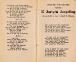 4. (BOERENOORLOG, TWEEDE) Nieuwe Coupletten van een 17 Jarigen Jongeling die gevlucht is van’ t eiland St. Helena. Amsterdam, E. van de Geer, (ca. 1900). 17 x 10 cm. Gevouwen, nietjes verwijderd. 8 p. Uitstekende staat.