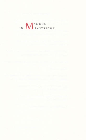 21. KNEEPKENS, Manuel Manuel in Maastricht. Banholt, In de Bonnefant, 1997. Vouwblad. Uitgereikt op 14 december 1997 in het Bonnefantenmuseum te Maastricht ter gelegenheid van het twintigjarig bestaan van In de Bonnefant. Gedrukt in rood en zwart in 150 exemplaren.