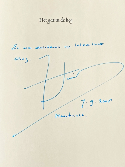 * Opdracht van de auteur in zwarte inkt op het schutblad, gedateerd en gesigneerd: ‘Den Haag!/ 19.5.2006’.