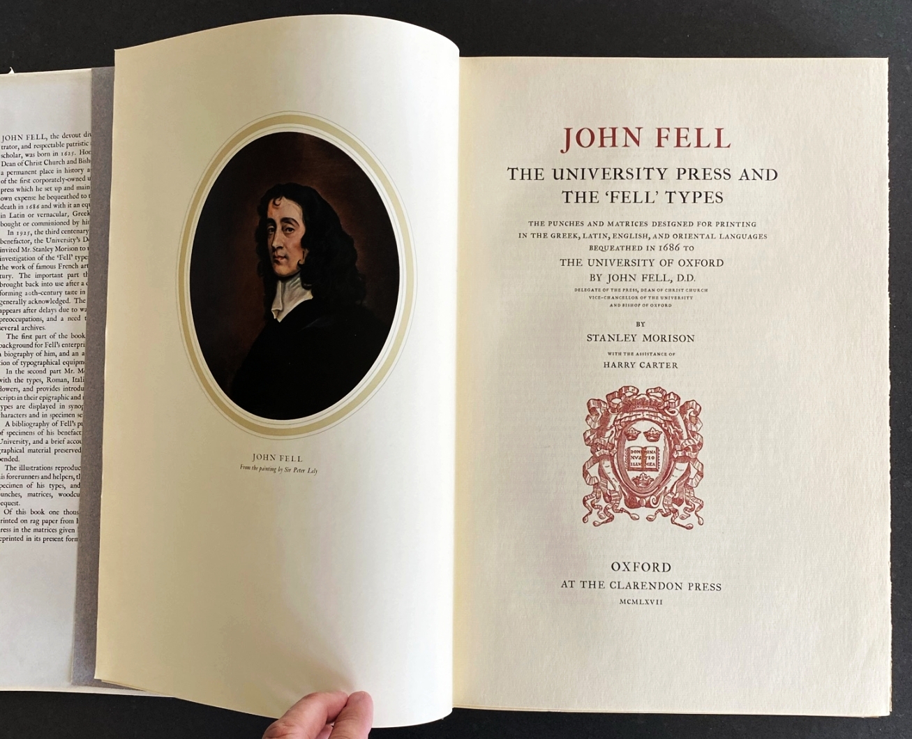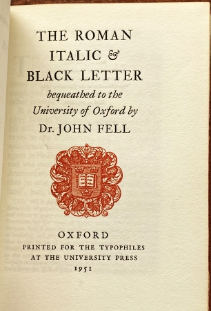 * De bisschop van Oxford John Fell (1625-1686), tevens deken van de universiteit, kocht voor de Oxford University Press een serie letters, vignetten en andere ‘dingbats‘ in Nederland. Deze monumentale uitgave beschrijft de historie, het leven en werk van Fell, en de letters zelf, tot in alle verrukkelijke details, en bovendien in grootse uitvoering. Ook met zes appendixes, bibliografieën, registers, nuttige woorden- en letternamenlijsten. De typografieliefhebber zal vele genoeglijke uurtjes met dit vier kilo zware juweel kunnen spelen.