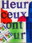 Bijgevoegd: Acht (twee blokken van vier) postzegels, ontworpen door Jan Bons en uitgegeven in 1995 als eerbetoon aan H.N. Werkman en ter gelegenheid van vijftig jaar bevrijding, waarop het omslag van Prière is afgebeeld.