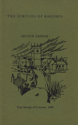 17. (GRAHAM, Rigby). CADDICK, Arthur The Virtues of Bacchus. Drawings by Rigby Graham. Leicester, New Broom Private Press (Toni Savage), 1984. Cahiersteek. 20 p. Gedrukt in 120 genummerde exemplaren op groen papier. 1e druk.