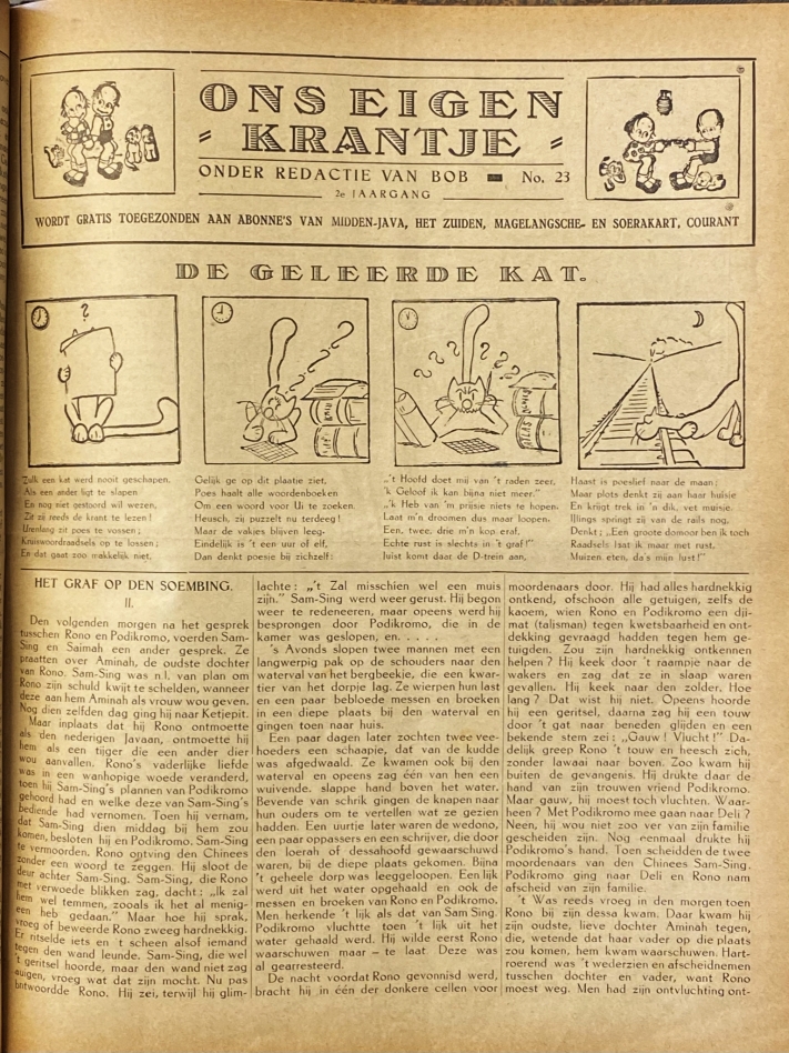 Niet in de NCC: niet te verwarren met Ons eigen krantje als bijblad van Het nieuws van den dag voor Nederlandsch-Indië, waar dit Midden-Javaanse kinderblad waarschijnlijk een imitatie van is. Helaas, alleen deze gedeeltelijke jaargang is present.