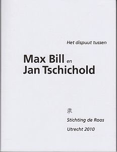 4. BILL, Max, en Jan TSCHICHOLD Het dispuut tussen Max Bill en Jan Tschichold. (Vertaald, bezorgd en met een verantwoording door Steven de Joode. Met een voorwoord door Wim Crouwel). (Utrecht Stichting De Roos, 2010). Ingenaaid met stofomslag. 80 p. Typografische verzorging Wim Crouwel. Gedrukt in een oplage van 175 genummerde exemplaren.