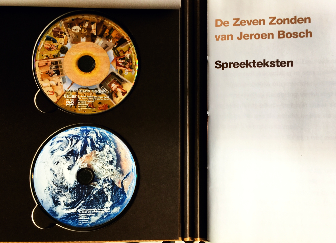 * Lied- en spreekteksten, gebaseerd op het aan Jeroen Bosch toegeschreven schilderij ‘De zeven hoofdzonden en de vier uitersten’. Komrijs teksten werden gebruikt in een muziektheatervoorstelling door Camerata Trajectina, een CD en een DVD van die voorstelling, op het toneel aan elkaar gepraat door Komrij zelf, zijn in het midden ingelegd. De Roos 180.