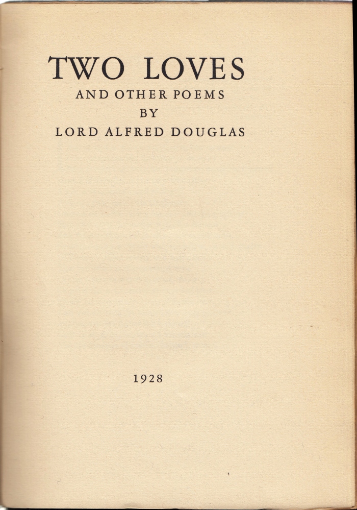 28. DOUGLAS, Lord Alfred Two Loves and Other Poems. Zonder plaats, [E. du Perron], 1928. Ingenaaid. (2), (4), 28, (4) p. Gedrukt door A.A.M. Stols op Ossekop in 50 exemplaren. Iets verbruind, vooral achterin, waar een papier in heeft gelegen. Op de binnenkant van het omslag plaksporen van een oud beschermingsmateriaal. Geheimzinnige inscriptie onder het colofon in oude, paarse inkt: ‘NR / 0’ met onleesbare paraaf, niet van Du Perron of Stols.