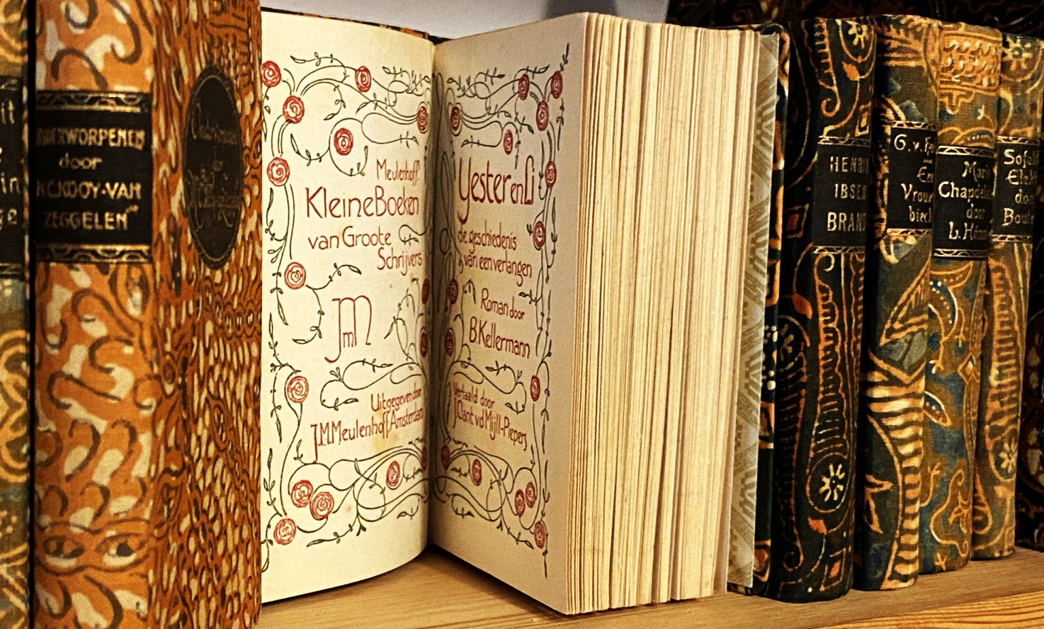 5. Yester en Li. Roman door B. Kellermann. (Versierde dubbele titelpagina met rozen, gedrukt in rood en groen).