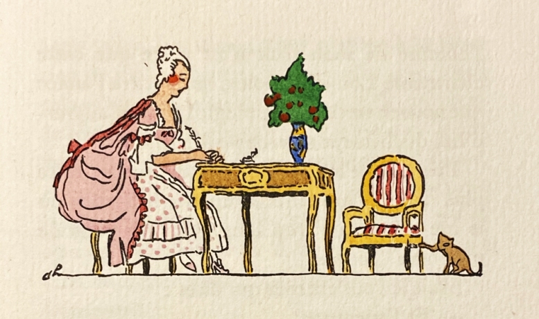 * ‘La berlue de Madame d’Estrailles’ en ‘Parthénope, ou l’escale imprévue’. ‘Berlue’ is een hersenschim, ‘parthenope’ betekent ‘maagdenstem’ en is de naam van een van de Sirenen. Maurice Renard (1875-1939) was een schrijver van science-fiction en fantastische verhalen, en deze twee horen in de laatste genre thuis – ze spelen in de tijd van Lodewijk XIV en XV. Leuke illustraties, die handgekleurd zijn, door Eugène Charpentier volgens het colofon.