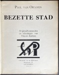 1. OSTAIJEN, Paul van Bezette stad. (Omslag, houtsneden en typografie door Oskar Jespers). Antwerpen, Het Sienjaal, 1921. 28,5 x 22,2 cm. Ingenaaid. (154) p. Niet afgesneden. Gedrukt naar typografische aanwijzingen van Oscar Jespers en René Victor in rood en zwart in een oplage van 540 genummerde exemplaren. 1e druk.
