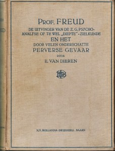 22. DIEREN, Evart van Prof. Freud. De uitvinder van de z.g. psychoanalyse of te wel “diepte”-zielkunde en het door velen onderschatte perverse gevaar. Baarn, Hollandia-Drukkerij, [1932]. Linnen. (4), IV, 314 p. 1e druk. Rug gescheurd. Met exlibris van de filosoof J.L. Bouman en stempels en andere tekens van de bibliotheek van het Rooms-katholieke Philosophicum te Warmond.
