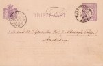 4. (ALBERDINGK THIJM, J.A.). ALLARD, H.J. Briefkaart van H.J. Allard aan ‘den Wel E.Z. Geleerden Heer Prof. J. Alberdingk Thijm’ te Amsterdam. Recto (adressering) en verso. Met voorgedrukte zegel van 2 1/2 cent in paars, afgestempeld op 14 december 1888. Oblong 9,1 x 13,6 cm. 11 regels. In keurige staat.