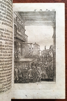 33. GAVIN, Antonio Le Passe-par-tout de l’Eglise Romaine, des Dietrichs, dessen sich die Römische Kirche an statt der Schlüssel Petri bedienet, Anderer Theil. Oder: Die Betrügereyen der Pfaffen und Mönche in Spanien. Nach dem Englischen Original ins Teutsche übersetzt. Zweyte Auflage. Keulen aan de Rijn, zonder uitgever, 1730. Kalfsleer uit de tijd. 522 p. Met 8 gravures. 2e druk. Rug en randen wat versleten. ‘M.v.C.’ in gouden letters op de voorkant. Enkele geschreven cijfers op de binnenkant van de band. Monogramstempel in een hoekje van de titelpagina. Tekstpapier verbruind.