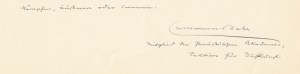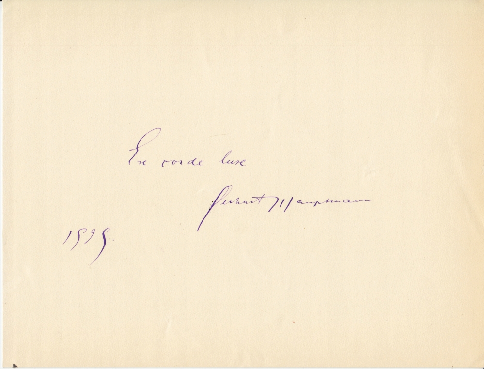 30. FORT, Paul ‘La Ronde autour du Monde’.’ (Gesigneerd handschrift). Origineel, gesigneerd handschrift in inkt geschreven op stevig papier. Alleen recto. 10 regels. Ongedateerd. Uitgeschreven voor een Rooms-katholieke missietentoonstelling in 1929.