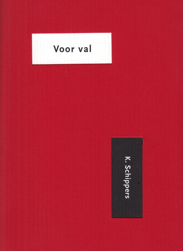 18. SCHIPPERS, K. Voor val. (Hilversum, uitgeverij 69, 2009). Ingenaaid met stofomslag met twee uitgestanste raampjes (Atelier de Distelkamp). (16) p. Gedrukt op Cartiera Magnani Pescia, Cartiera Magnani Firenze en Neenah Columns in een oplage van slechts 26 door de auteur geletterde en gesigneerde exemplaren. 1e druk. Paar minieme vlekjes op middenblad.