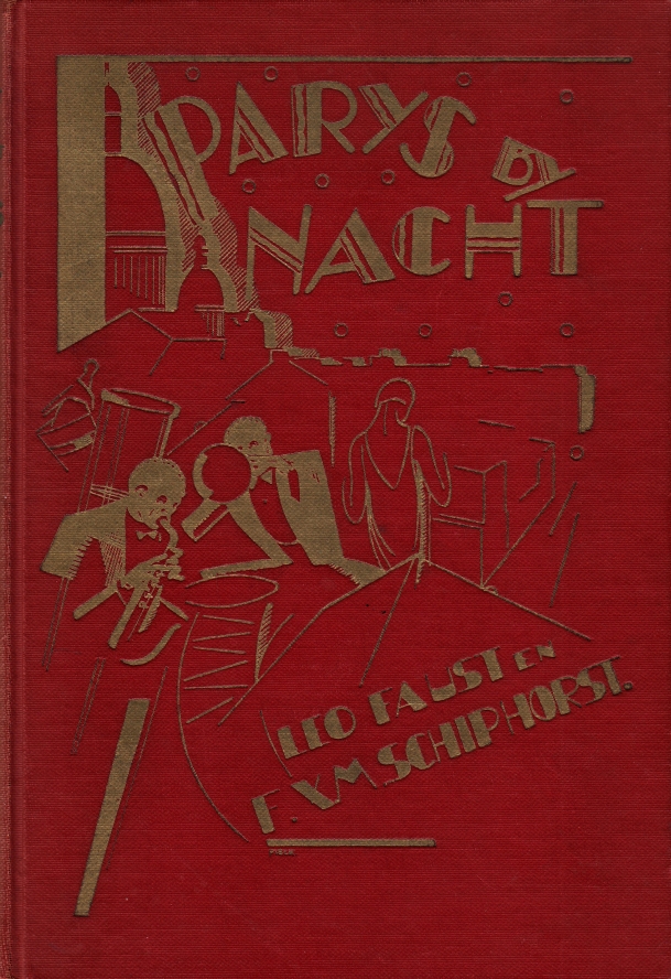22. FAUST, Leo, & F.X.M. SCHIPHORST Parijs bij nacht. Met circa 70 illustraties. (2e herziene druk). Amsterdam, Scheltens & Giltay, [1929]. Versierd rood linnen met opdruk in goud. 180 p. Gedrukt op kunstdrukpapier. Achterin reclame voor Parijse gelegenheden en voor Nederlandse boeken. Geheel herziene en vermeerderde 2e druk. Scheur in rug.