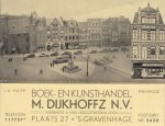 11. DIJKHOFFZ, M. Boek- en kunsthandel M. Dijkhoffz N.V. La Haye – The Hague. Den Haag, M. Dijkhoffz, ca. 1930. Reclameblad met zwartwitfoto’s. 4 p. Met horizontale vouw.