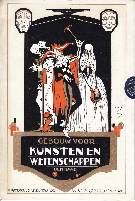29. (IBSEN, Henrik) Nora. Insceniert von Director Oscar Wagner. Gastspiel Albert Bassermann. Gebouw voor kunsten en wetenschappen te s-Gravenhage. Theaterprogramma, 1924. Rotterdam-Den Haag, Jos. van Biene, [1924]. Serie-omslag van Carl Jung in oranje, goud en zwart gedrukt. 4 p. tekst, met advertenties en plattegrond. Netjes. Sluitzegeltje verbroken.