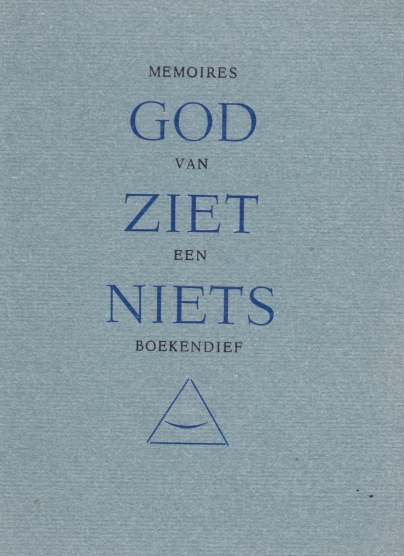 1. ANONIEM God ziet niets. Memoires van een boekendief. Utrecht, (De Bucheliuspers), 1992. Karton. (2), 34 p. Gedrukt in blauw en zwart in 55 genummerde exemplaren. 1e druk.
