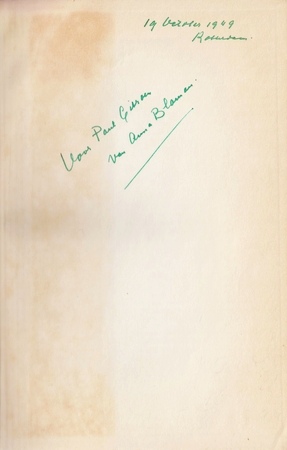 * Opdracht van de auteur in groene inkt op het voorste schutblad: ’19 October 1949/ Rotterdam./ Voor Paul Citroen/ van Anna Blaman’.