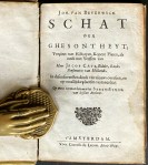 3. BEVERWIJCK, Johan van Schat der gesontheyt; verçiert met Historyen, Kopere Platen, als oock met Verssen van heer Iacob Cats (…). In desen sevensten druck van nieuws oversien, ende op ontallijcke plaetschen vermeerdert. Op nieus vermeerdert met het Steen-Stuck, van deselve Autheur. Amsterdam, Cornelis de Leeuw, 1649. 15,5 x 10 cm. Perkament uit de tijd. (16), 682, (2), 86 p. Geïllustreerd met 27 kopergravures in de tekst en twee buitentekstplaten. 7e druk. Boekband in goede staat. Vochtvlek eerste pagina’s, achterste kneep wat los. Vrij goed exemplaar.