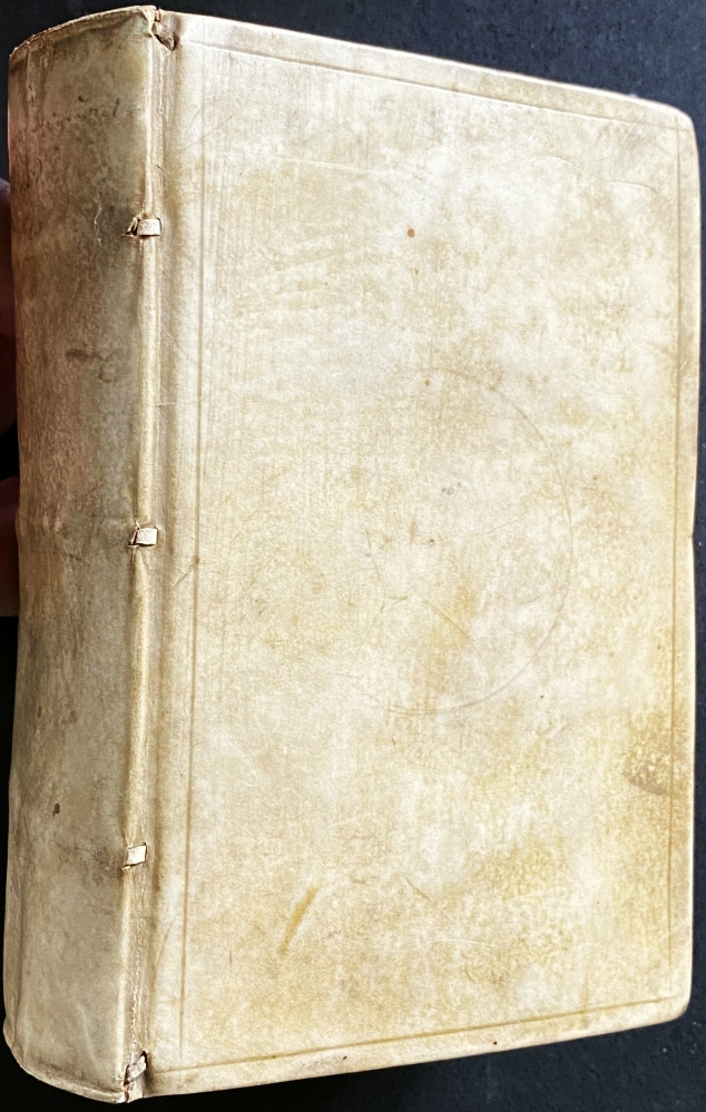 1e druk. Band wat gevlekt, slijtage aan de rug en randen. Voorkneep ligt iets open. Wat roestvlekjes binnenin, maar in heel acceptabele staat.