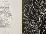 2. DEELDER, J.A. Gedicht tijdens het wachten. (Met een originele, geletterde en gesigneerde linosnede (portret van Deelder) door Jan Vranken). [Gent], De Gele Gier, 1990. 43,0 x 30,0 cm. Twee plano’s in omslag. Gedrukt in een oplage van slechts 26 door de dichter geletterde, gedateerde en gemonogrammeerde exemplaren.