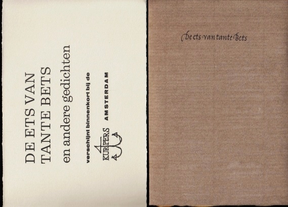 * Persiflage op het gedicht ‘De ets van tante bets’ van Theo Kurpershoek. Deze uitgave werd in druk opgedragen aan Theo Kurpershoek (‘aan theo van de kurpers/ die geloof hecht aan/ de artistieke praatjes/ van zijn tante’). Het karakter van deze uitgave doet het vermoeden rijzen dat er slechts enkele exemplaren van zijn gedrukt.