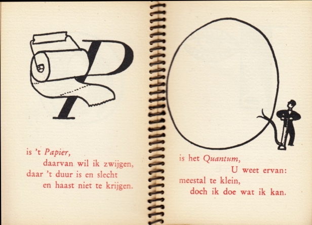 * Dit minuscule relatiegeschenk werd volgens de bibliografie in Miniature Book News geschreven door F.A. Thomése (1921-1979), directeur van Van de Garde. Dat was niet zo moeilijk, het is feitelijk maar één zin. Ontwerp en leuke tekeningen van Levien. Nr. 20 in de bibliografie