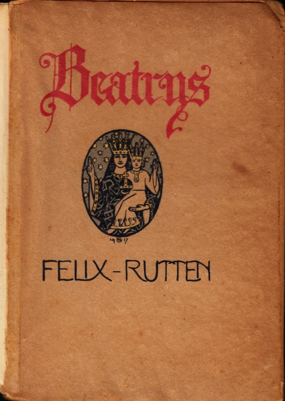 32. RUTTEN, Felix Beatrijs. Mysteriespel in vier taferelen. Verlucht met teekeningen van G. Westermann Amsterdam, Boekcentrale, 1918. Perkaline (waarop een illustratie in kleur en goud). 92 p. 1e druk. Rug van het perkaline ontbreekt en ook verder wat schade in het breekbare perkamentpapier. Wat vlekjes.