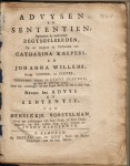 * Over een kindermoord door een grootmoeder en een moeder uit Elburg. Uitvoerige beschrijving van het treurig gebeuren, doorregen met geleerde juridische overwegingen, veelal in het Latijn. Gevolgd door een vergelijkbaar geval uit Harderwijk, een moord ‘in dementia’ door een krankzinnige vrouw op haar dochter. In het eerste geval, waarbij het motief van de moord de onwettige geboorte was, werden beide daders geëxecuteerd. De tweede moeder moest vanwege haar geestelijke aandoening voor de rest van haar leven ‘in een secuur confinement’ gevangen worden gehouden. Aantrekkelijke band. Knuttel 17418.