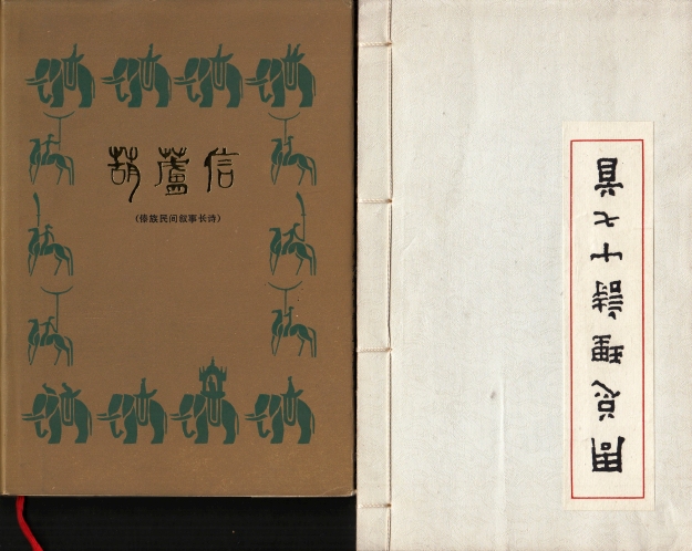 16. CHINESE BOEKEN Drie Chinese boeken uit de collectie van Huib van Krimpen. 1-2. Twee boeken met volkspoëzie, geïllustreerd. Beide hardcover met stofomslag (oplage 500 exx. gebonden), beide uit 1978.