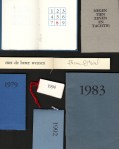 44. WAL, Eric van der Collectie van 19 nieuwjaarswensen in de vorm van miniboekjes, 1978-1997. [Bergen], Eric van der Wal, 1977-1996. Verschillende formaten, maar de boekjes variëren tussen 20 en 80 millimeter hoog. Cahiersteek. Boekjes met alle het nieuwe jaartal als titel en als tekst, in verschillende kunstvormen weergegeven. Met de hand gezet en gedrukt in gewoonlijk ca. 100 exemplaren, en door Van der Wal gesigneerd.