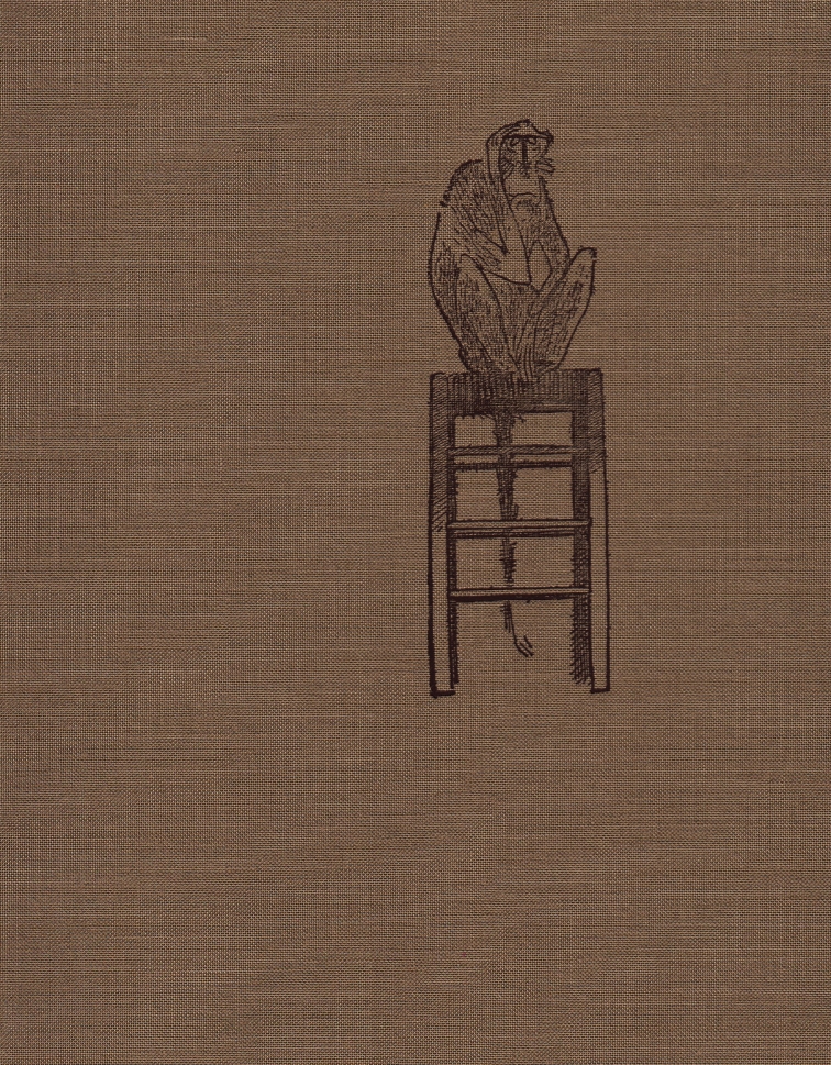 13. HELMAN, Albert Mijn aap schreit. (Met illustraties van Peter van Hugten). Utrecht, Stichting De Roos, 1983. Linnen. 56 p. Typografie Peter van Hugten en Mart Kempers. Gezet uit de Bembo en gedrukt door Geuze op Hahnemühle in een oplage van 175 genummerde exemplaren.